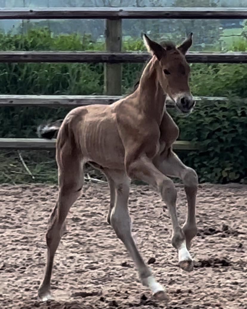 CLF Zevas Mystery (sold as a foal to a producing home in England in 2020) and is a full sister to Zeus.