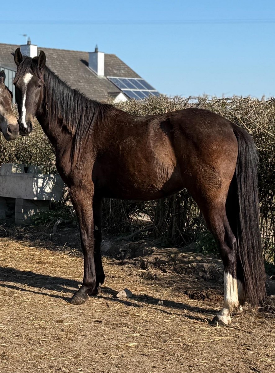 Zeta is a powerful Bay 16.3hh 2001 Mare (Flagmount King x King of Diamonds ) dam by Cavalier Royale who has very good movement and excellent breeding. She was backed as a 3 year old and showed great scope over a pole together with super temperament! She was shown in hand at Kilmacanogue Horse Show 2005 for the first time and came 2nd and 4th where she was up against previous Dublin Horse show winners, the judge said that she would have a very promising career with a foal at foot!